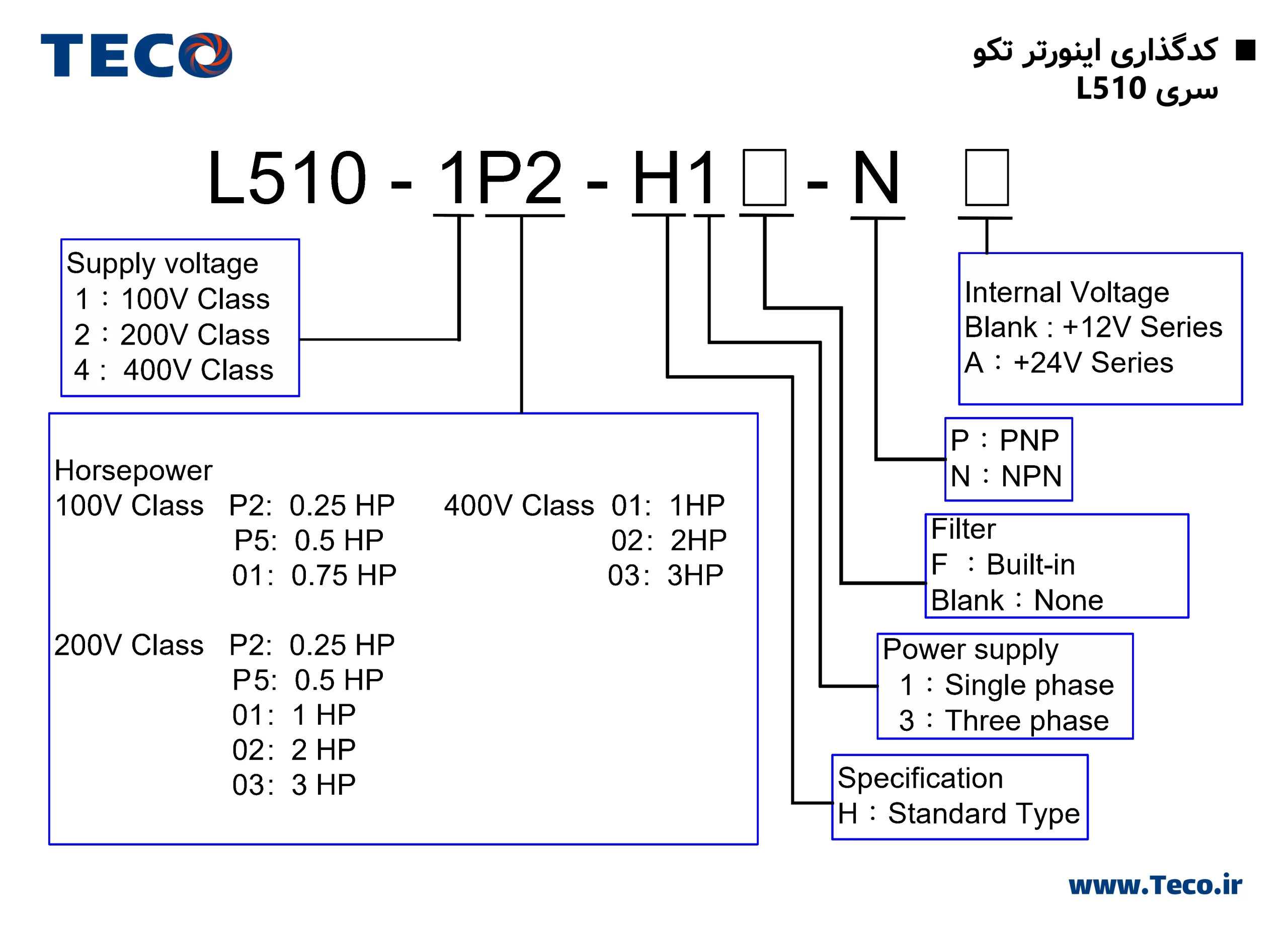 کدگذاری اینورتر های تکو سری L510 به شکل زیر است :